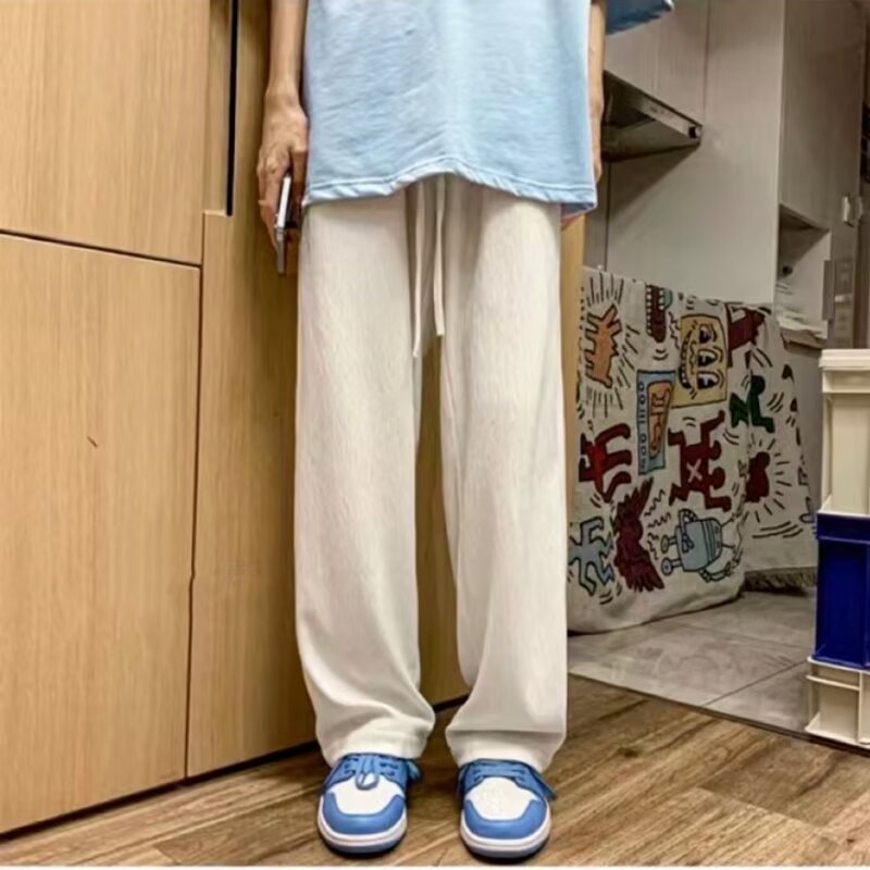 冰丝褶皱休闲裤男夏季薄款港风宽松直筒裤情侣ins潮流垂感阔腿裤