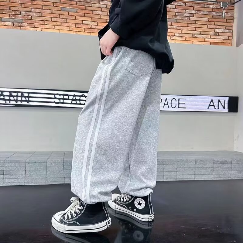 条纹拼色撞边裤子儿童春夏美式高街潮牌直筒宽松阔腿垂感休闲长裤