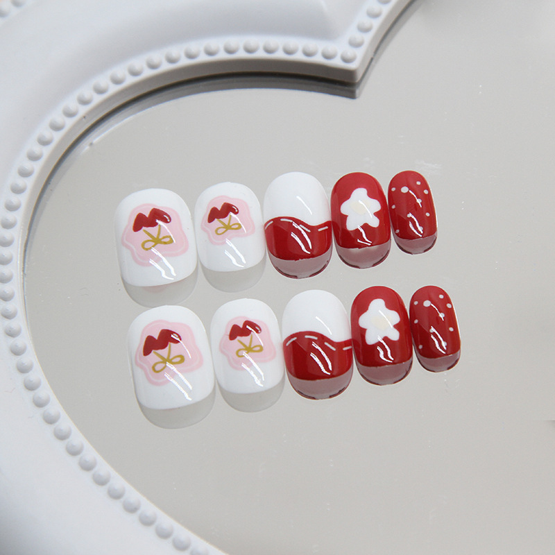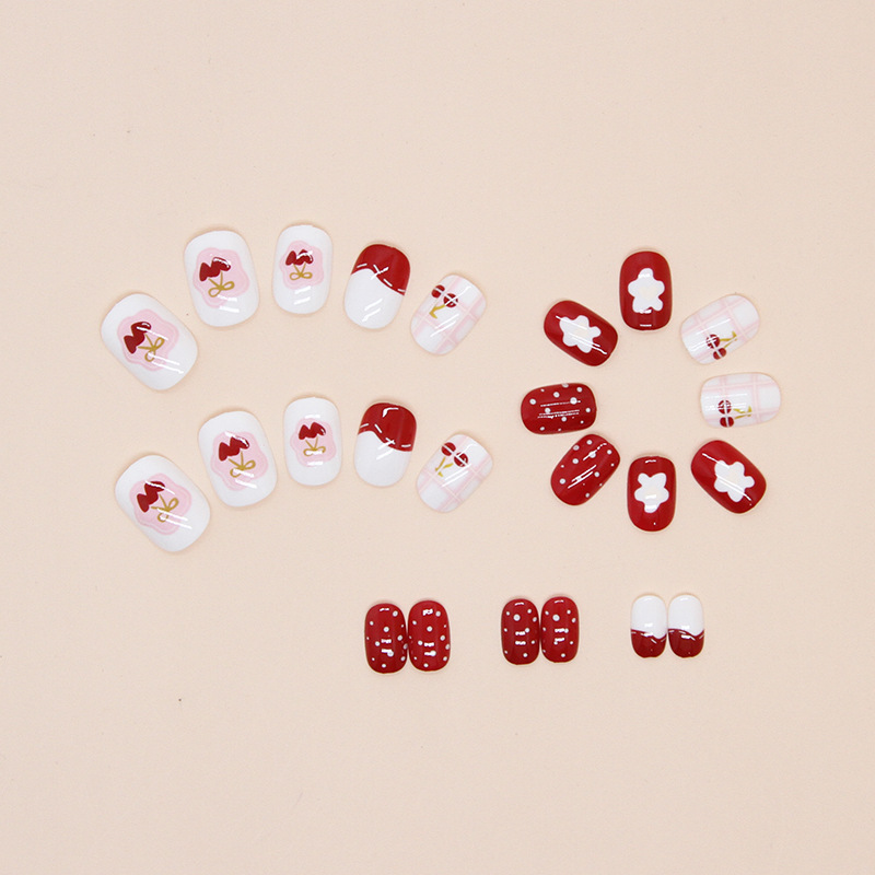可爱美甲穿戴甲儿童假指甲美甲片指甲片红色波点草莓美甲贴片24片