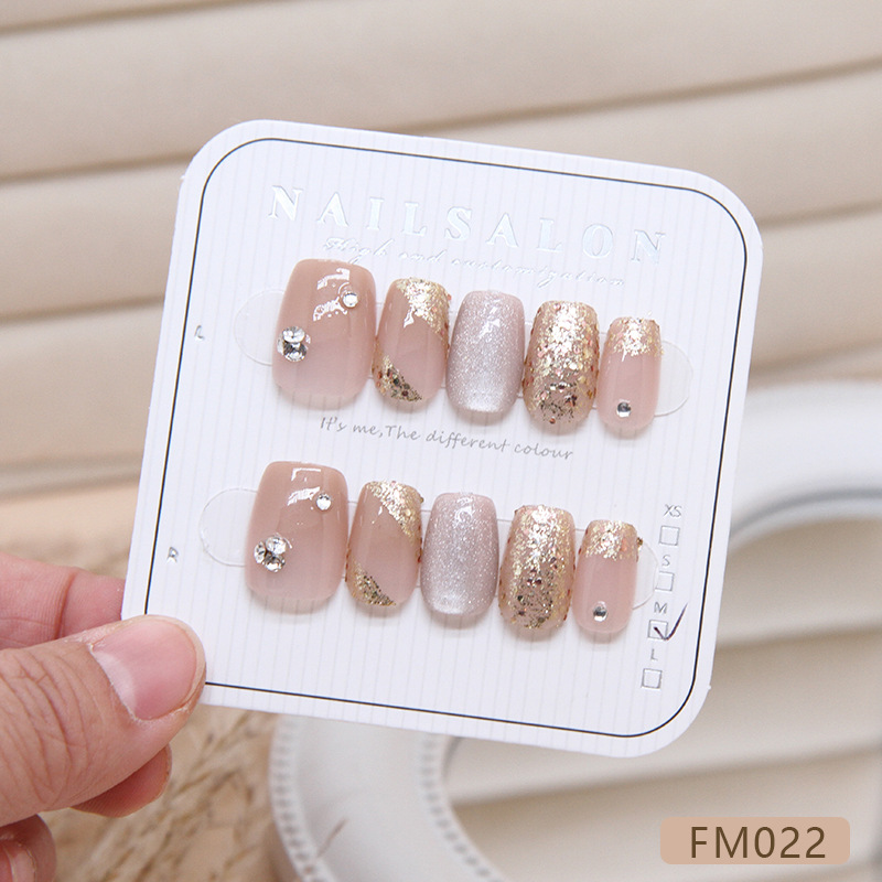 堆堆钻猫眼手工穿戴甲可拆卸美甲片指甲片小短T直播甲片分码10片