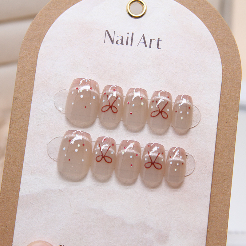 法式猫眼穿戴甲可拆卸美甲片指甲片美甲贴片蝴蝶结波点甲片10片