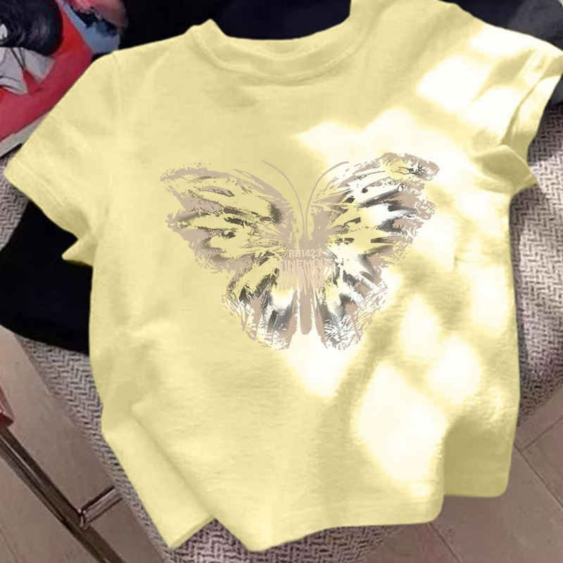 嫩黄色正肩短袖t恤女夏季新款修身显瘦露脐短款辣妹小上衣ins