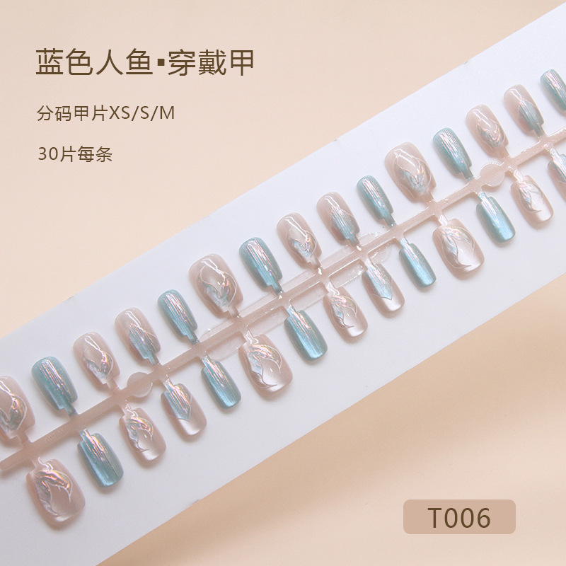 人鱼猫眼穿戴甲短芭蕾小短T美甲贴片指甲片ins风预制甲分码30片