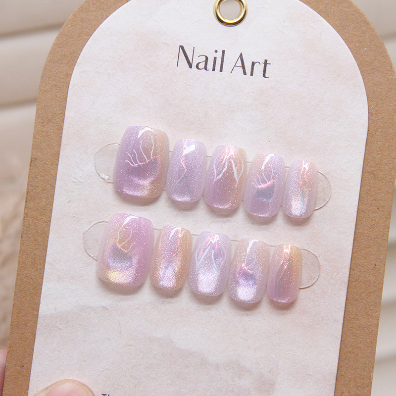 水母猫眼穿戴甲可拆卸美甲片手工甲指甲片短T美甲贴片分码10片