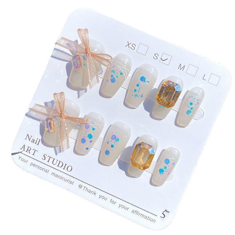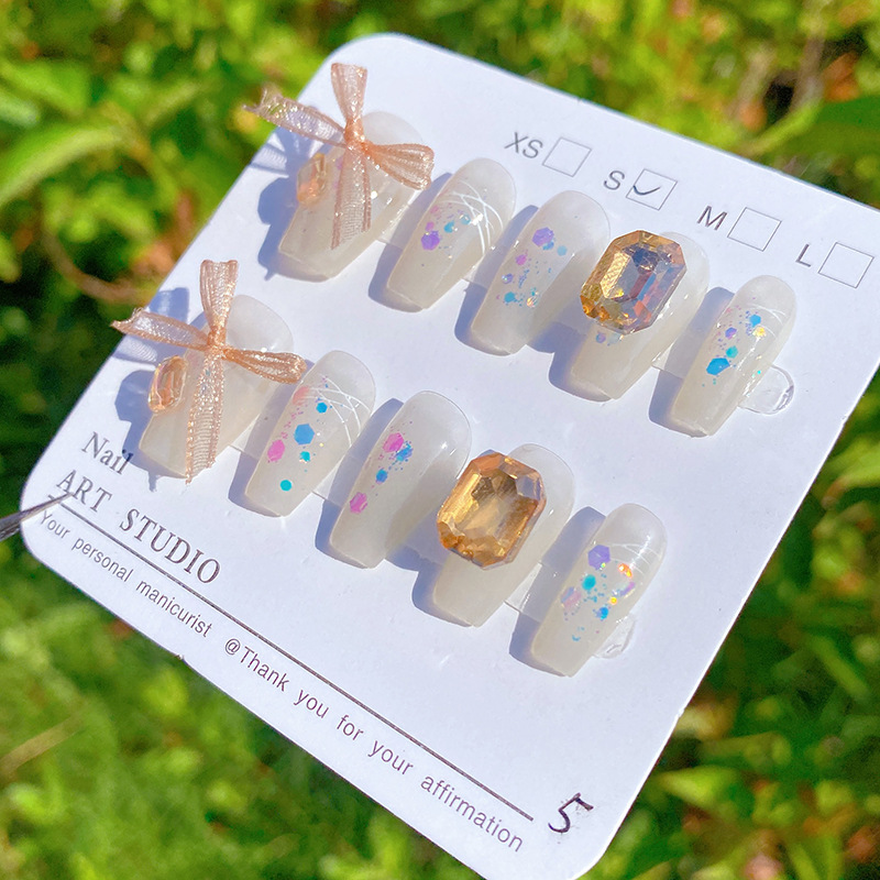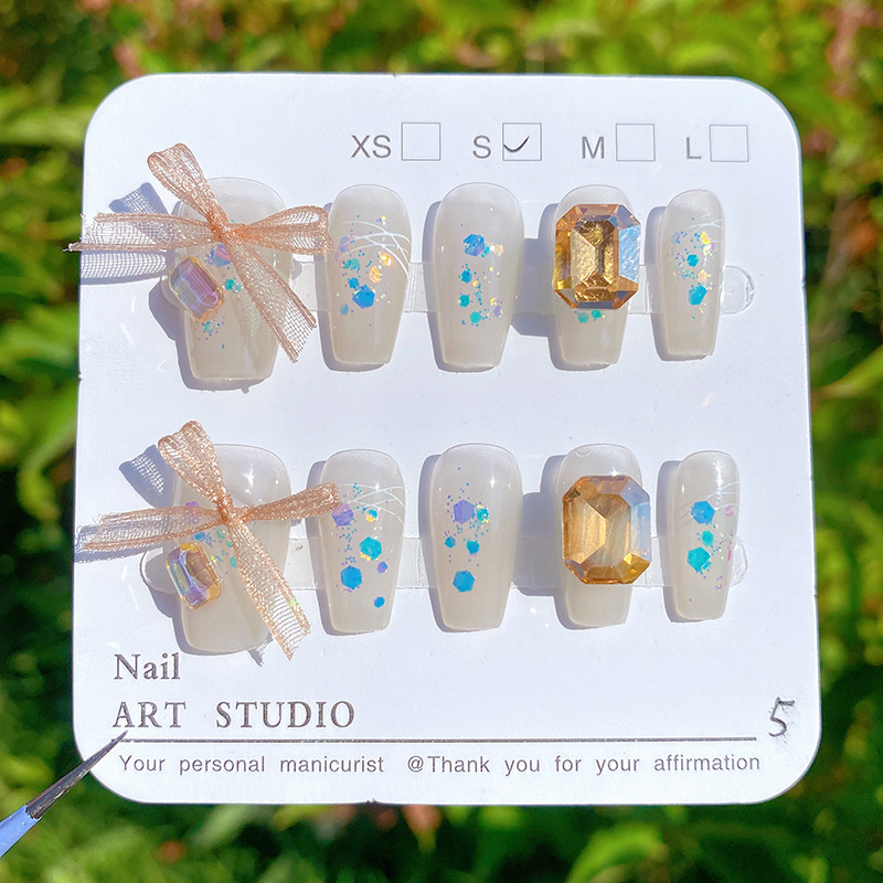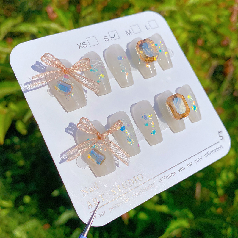 纯手工穿戴甲可爱风蕾丝蝴蝶结美甲可拆卸甲片