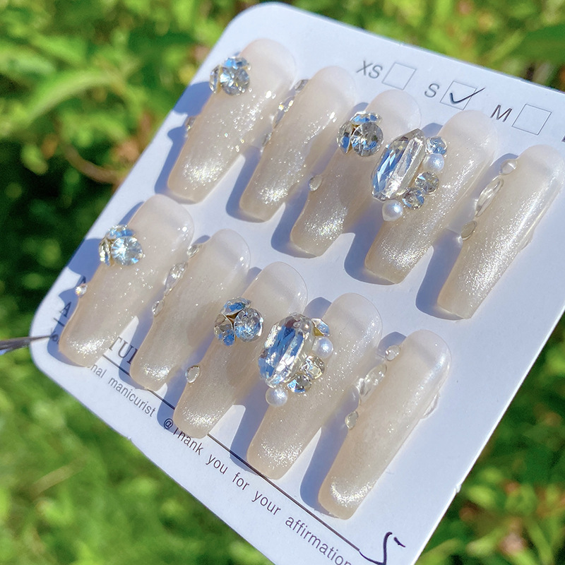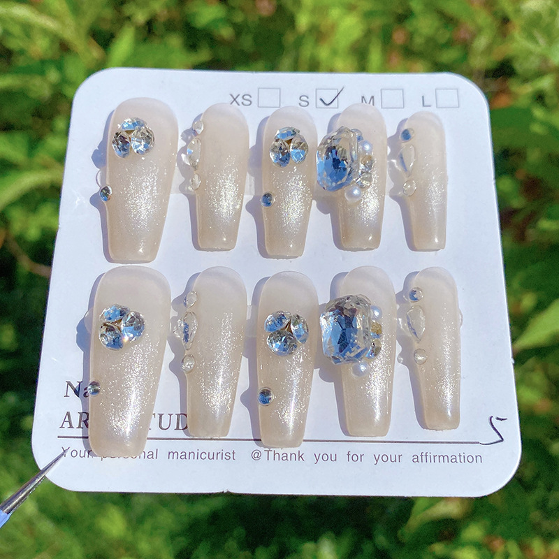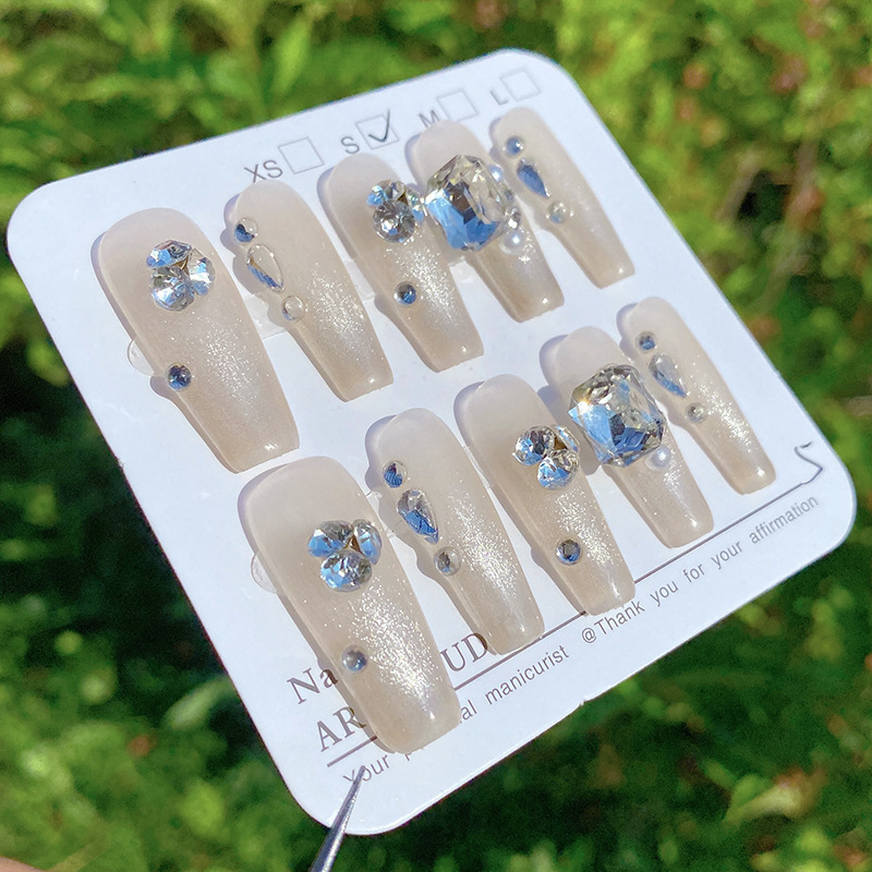 纯手工穿戴甲裸色猫眼钻石美甲贴优雅端庄显白可拆卸甲片