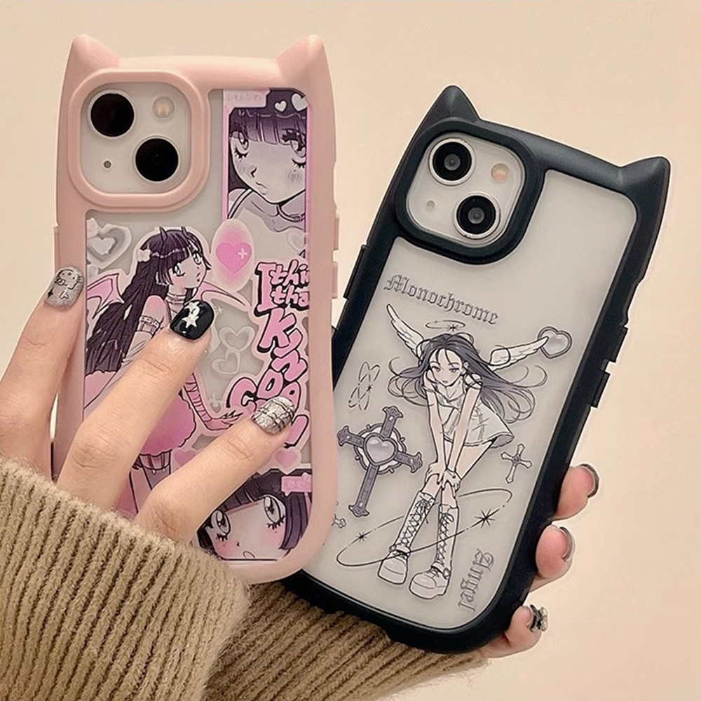 适用苹果15pro手机壳新款iphone14promax甜酷恶魔少女12猫耳朵13