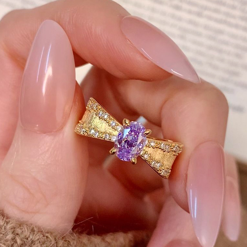 小红书爆款vintage手工拉丝缎带紫钻戒指镶钻复古时尚鸽子蛋指环