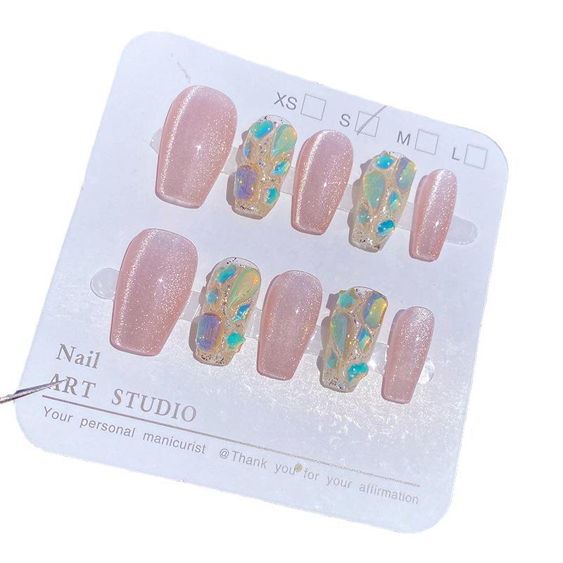 手工制作穿戴甲茉莉花茶爆闪猫眼极光钻温柔显白美甲贴成品可拆卸
