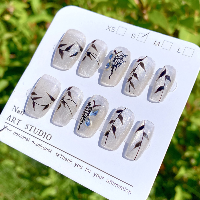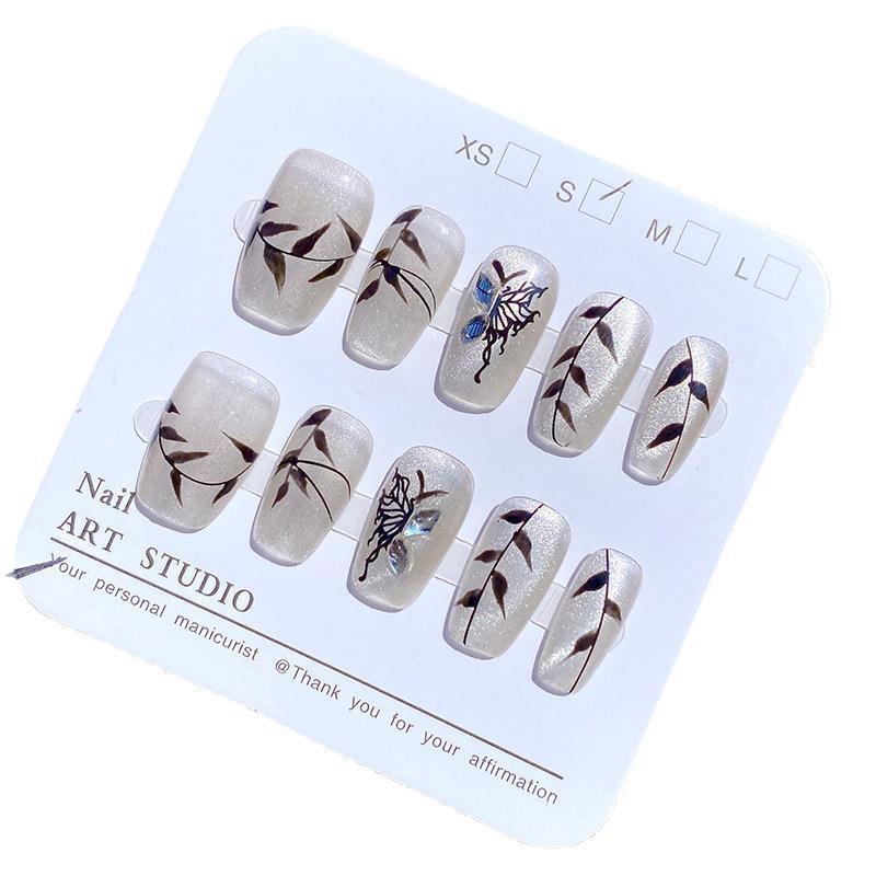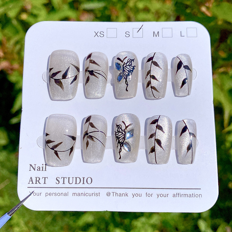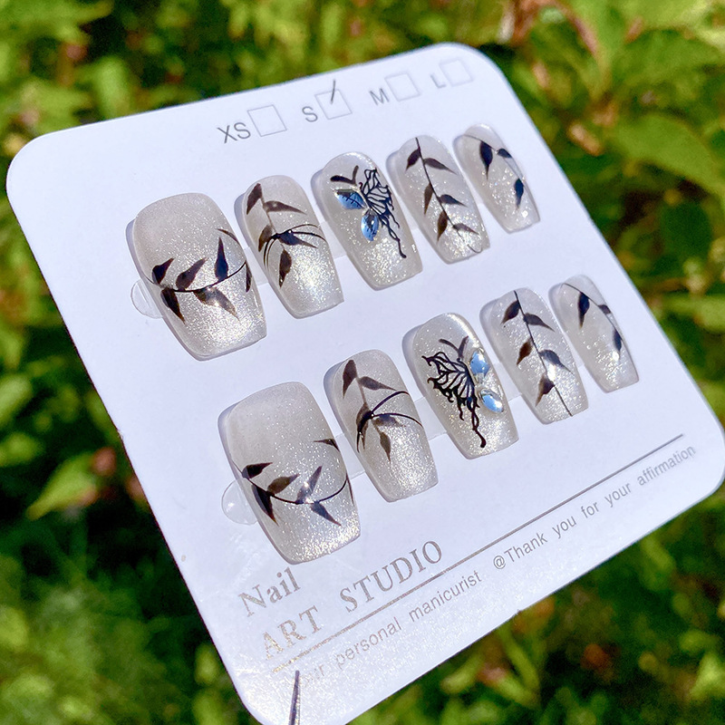 纯手工穿戴甲翠竹幽香中国风猫眼竹子蝴蝶新中方可拆卸甲片