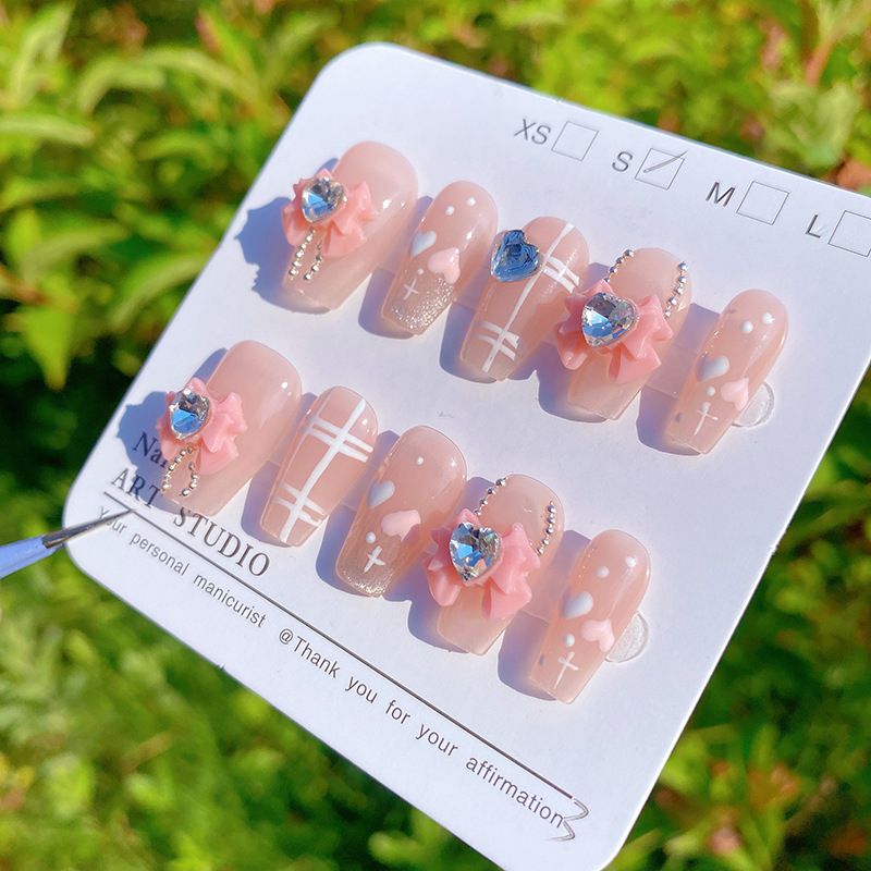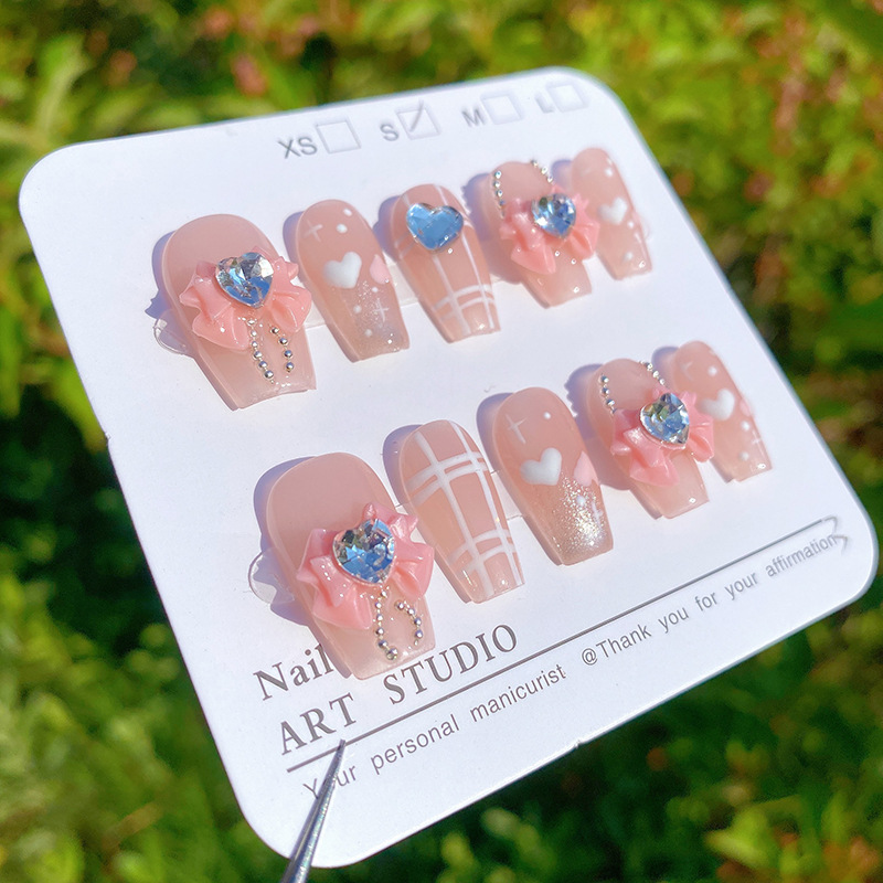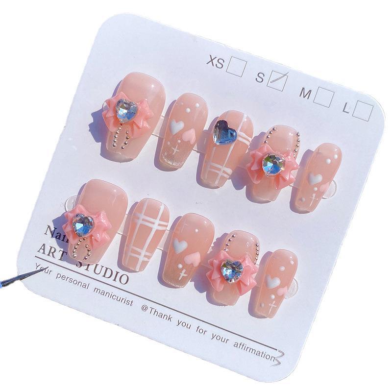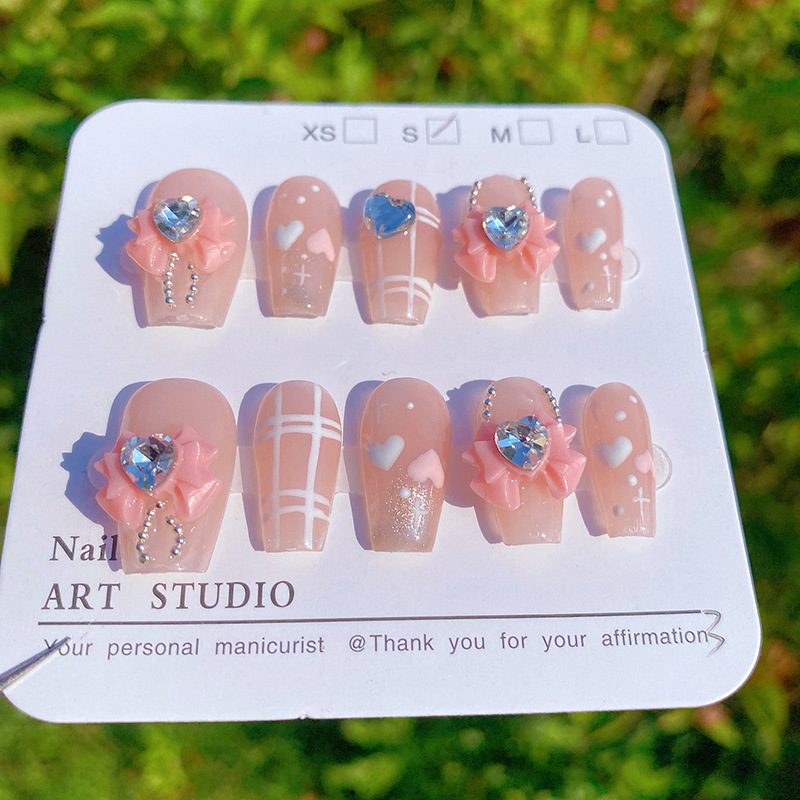 纯手工穿戴甲甜心守护可爱蝴蝶结甜美少女风美甲可拆卸甲片