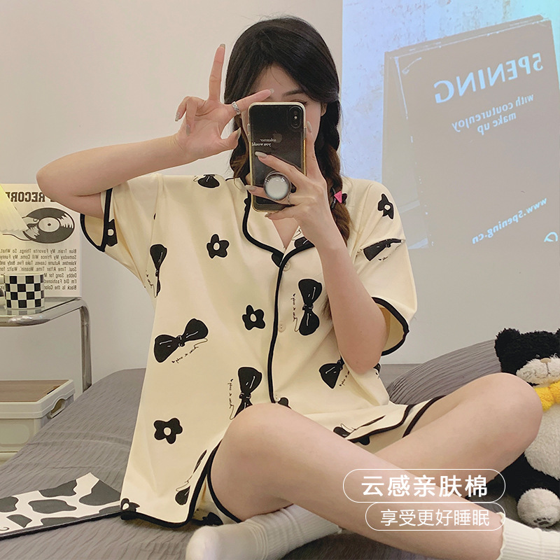 新款睡衣女夏季纯棉短袖网红少女生甜美开衫大码家居服夏天