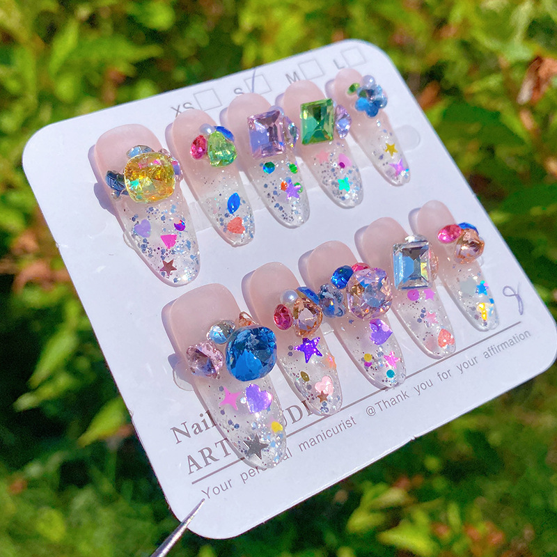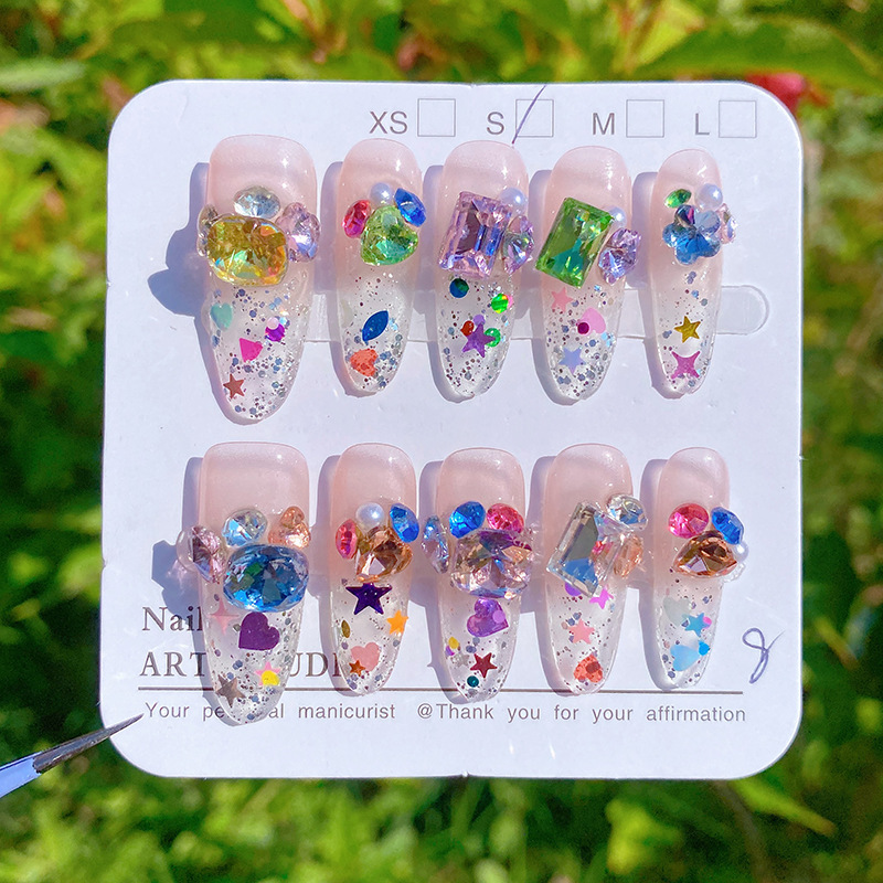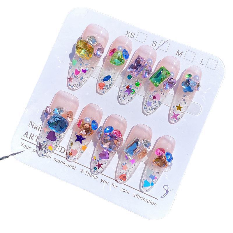 纯手工穿戴甲网红爆款樱禾夏日彩钻冰透糖果汽水可拆卸甲片