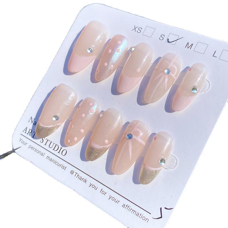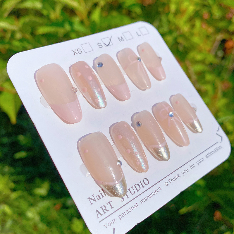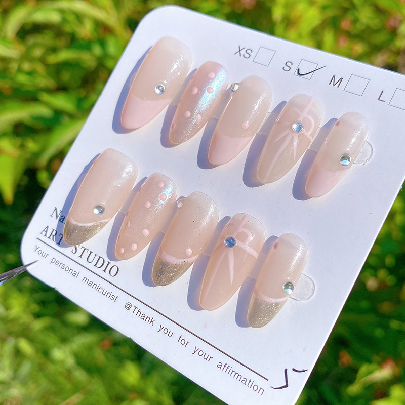 纯手工穿戴甲高级ins风法式蝴蝶结中椭圆美甲可拆卸甲片