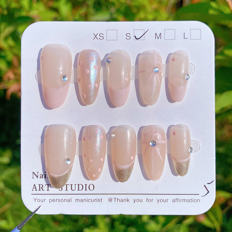 手工美甲穿戴甲假指甲贴片彩虹水蜜桃美甲成品小红书爆款短款学生