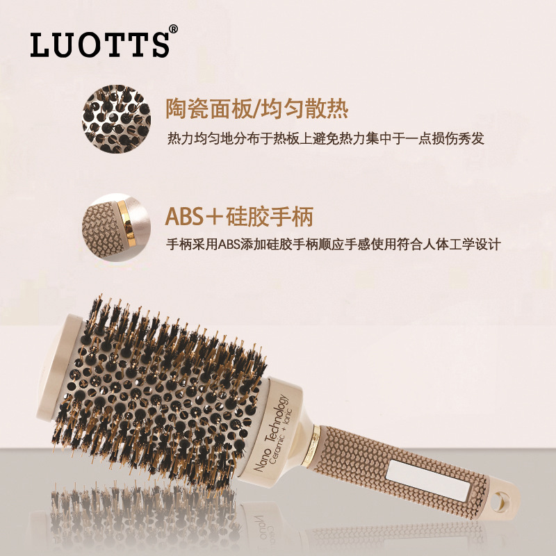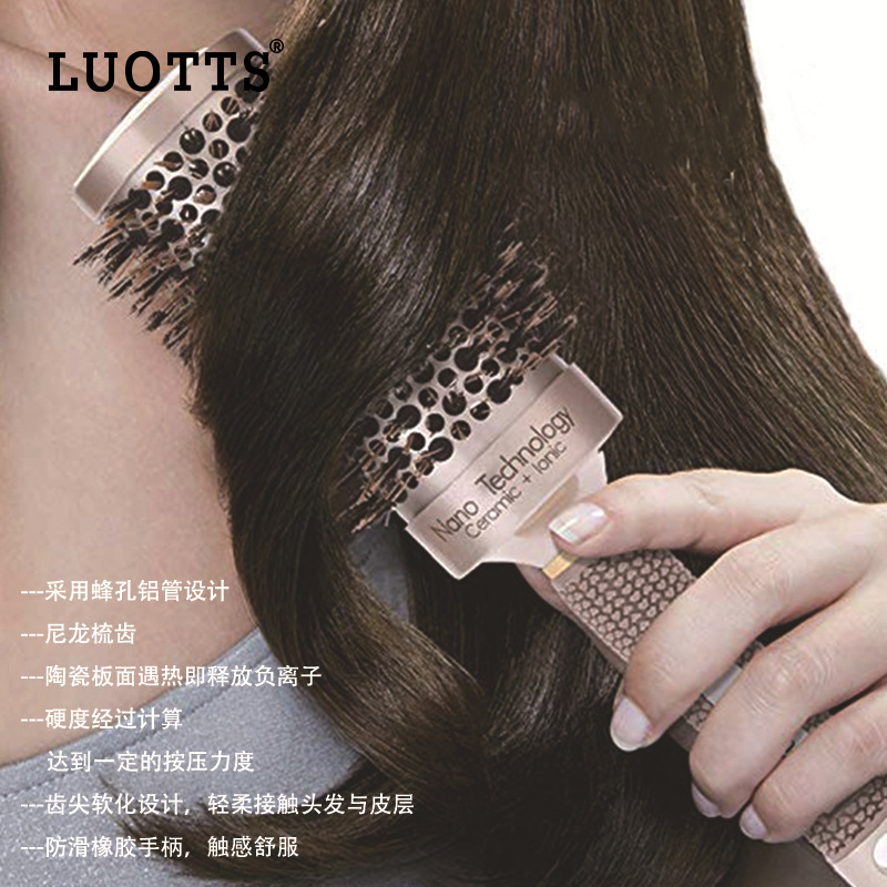 圆筒卷发滚梳发廊造型鬃毛梳子导热空气铝管梳陶瓷滚梳美发梳子