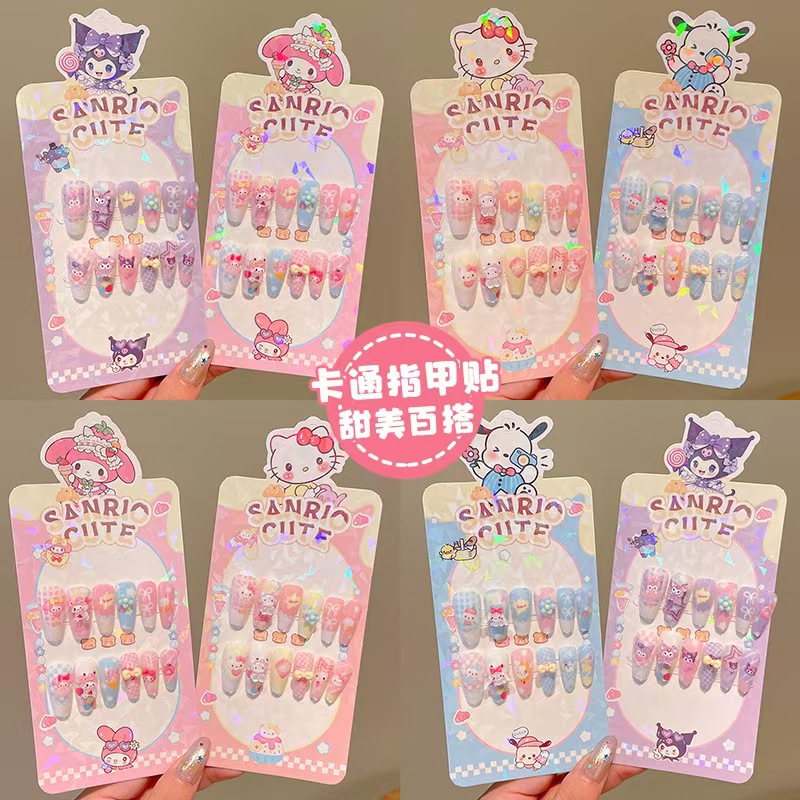 卡通儿童穿戴甲长款显白女童指甲贴新款美甲贴可拆卸美甲贴