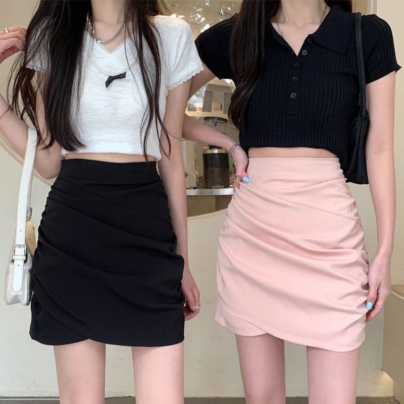 半身裙女高腰显瘦a字裙夏季新款不规则性感褶皱包臀短裙子