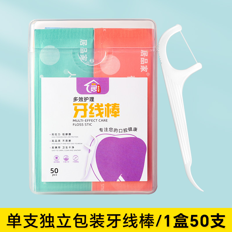 50支盒装彩色牙线棒独立包装清洁口腔一次性家用装塑料牙线棒