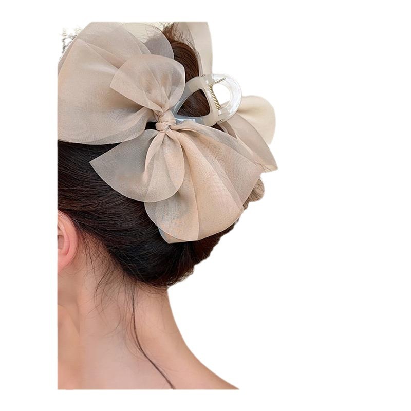 夏季新款网纱蝴蝶结抓夹大号发夹女后脑勺新款鲨鱼夹头饰