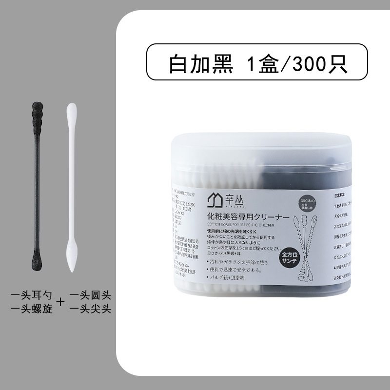 300只盒装棉签掏耳朵螺旋双头一次性多功能挖耳勺拼色棉花棒