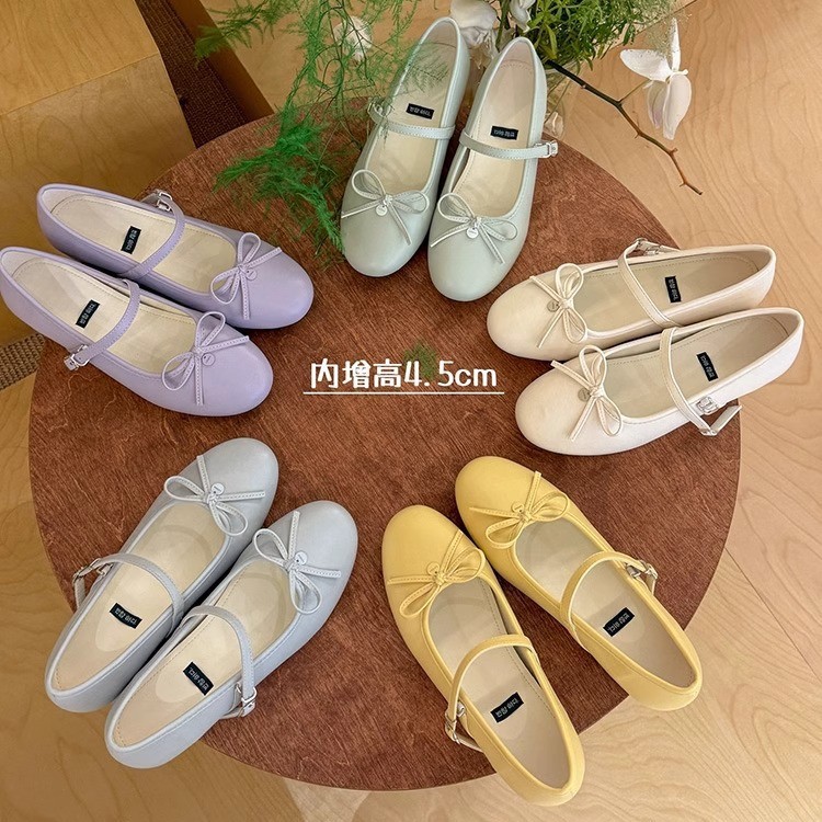 仙女风内增高一字带玛丽珍单鞋女2025春夏新款蝴蝶结温柔芭蕾舞鞋