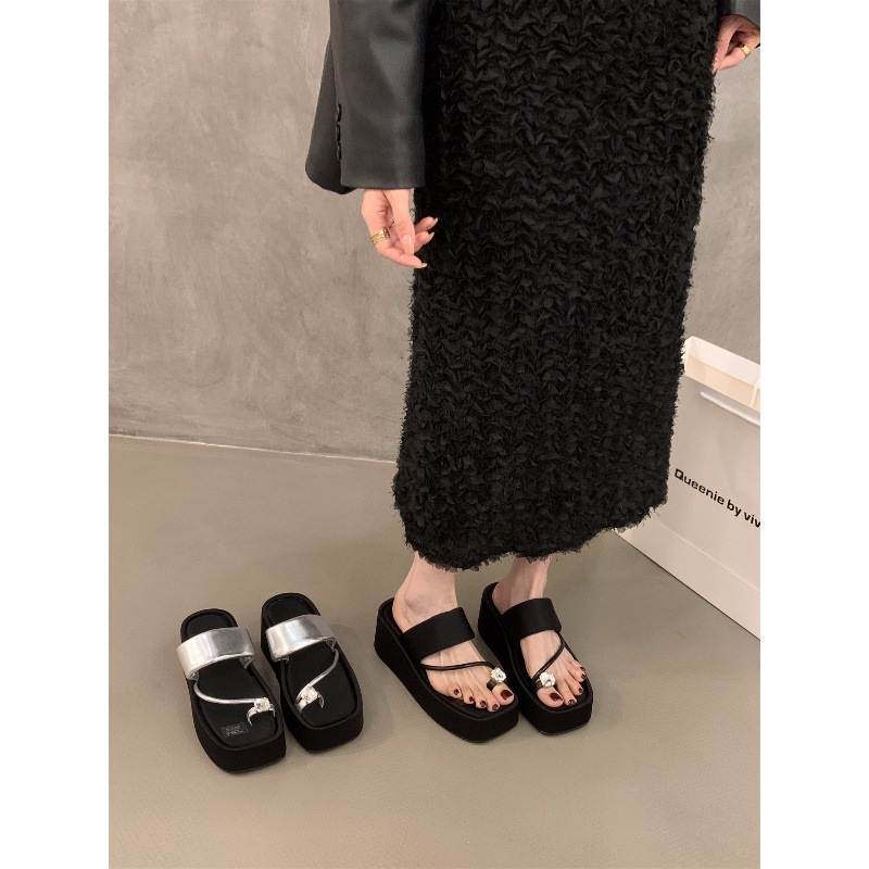 厚底拖鞋女鞋子外穿新款夏季坡跟小个子套趾水钻凉拖增高凉鞋