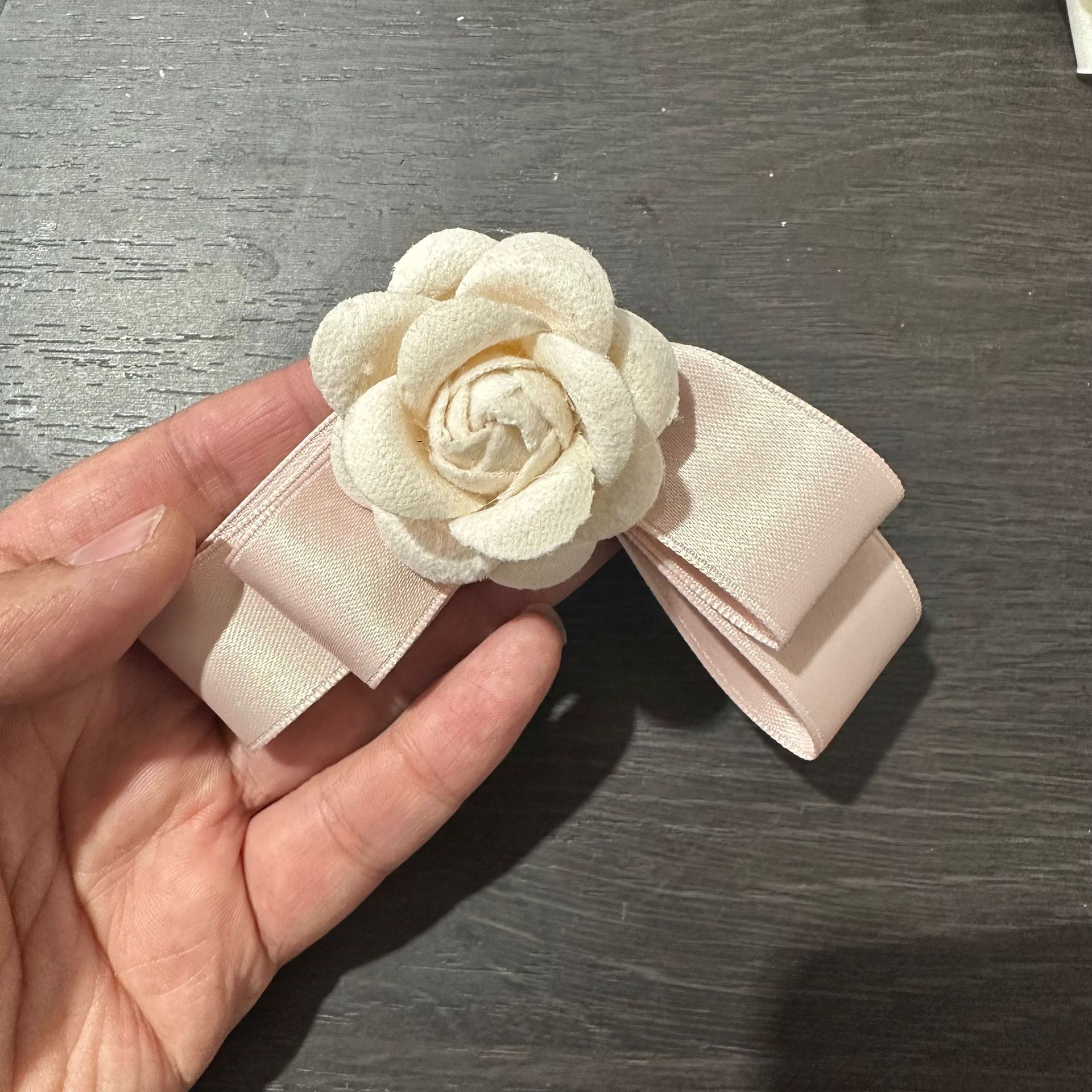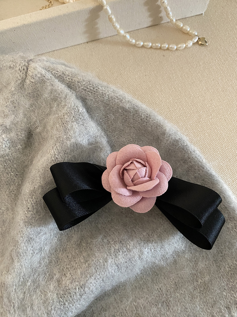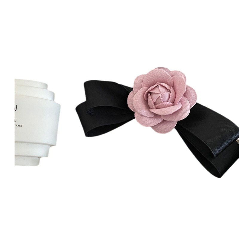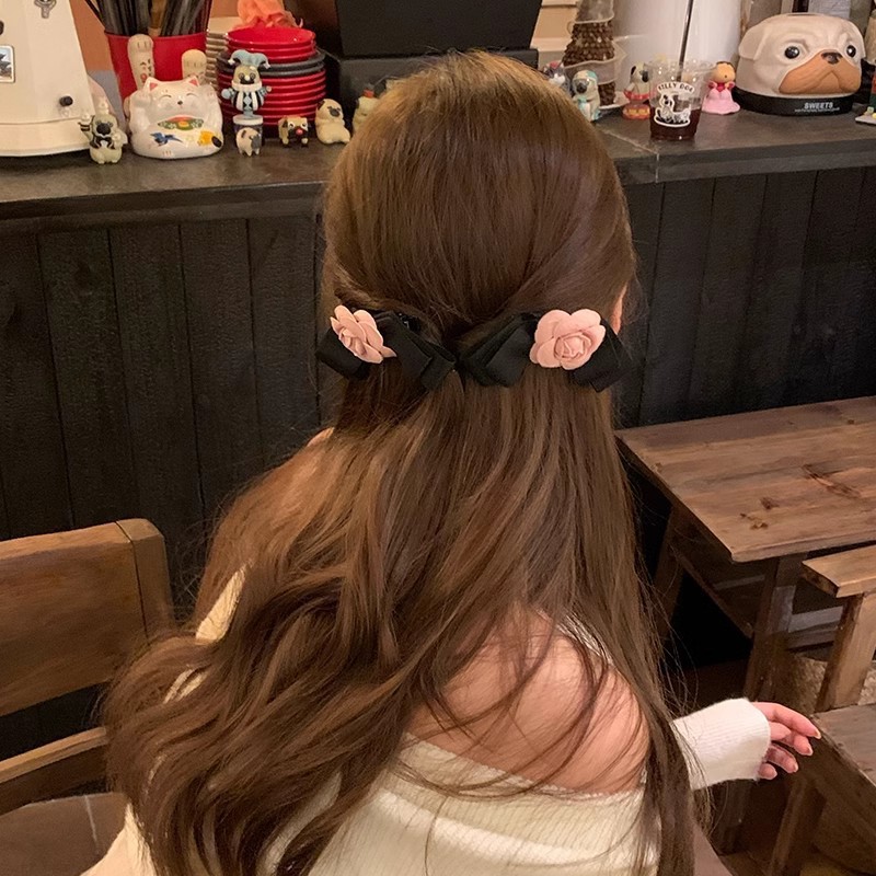 新款甜美温柔山茶花朵蝴蝶结发夹小香风后脑勺顶夹发饰女
