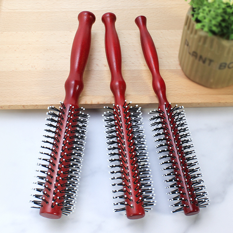 木质无鬃毛卷发梳内扣梨花头造型梳子V型毛圆滚梳蓬松波波头