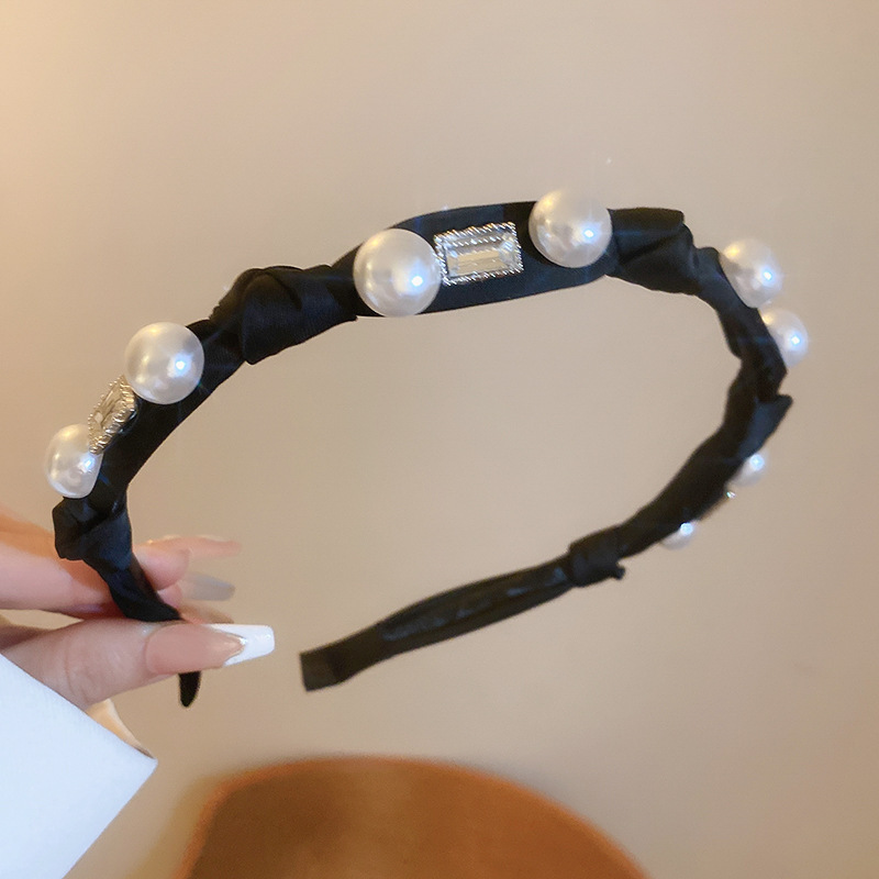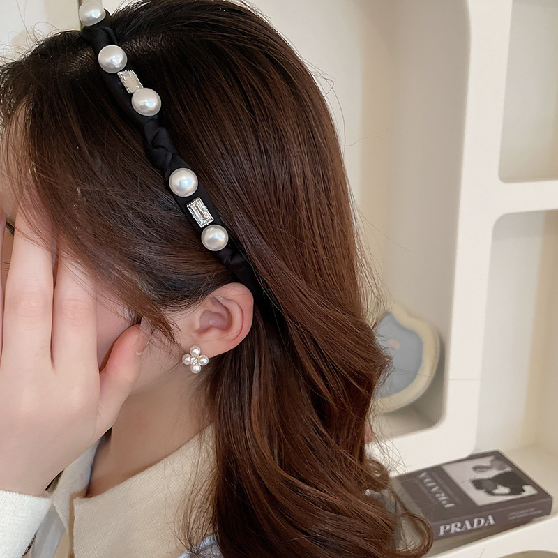 黑色珍珠褶皱发箍女新款夏款高颅顶洗脸压发卡高级感头箍发饰