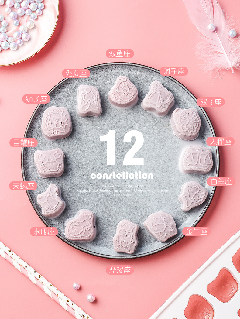 十二星座雪糕模具家用食品级卡通可爱冰块模具diy自制带盖冰棍模