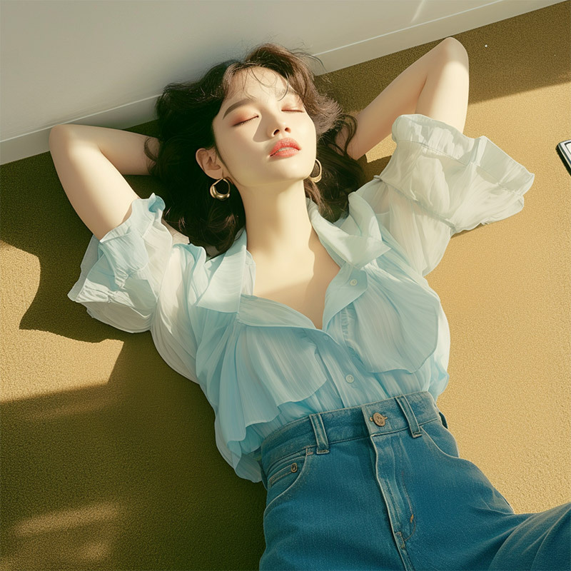 别致甜辣很仙的雪纺上衣女夏季小众时髦减龄温柔风蓝色荷叶边衬衫