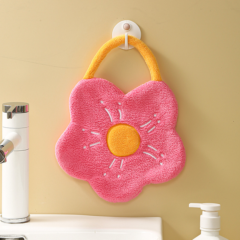 花朵擦手巾可挂式厚珊瑚绒擦手巾创意卡通擦手毛巾 吸水手帕