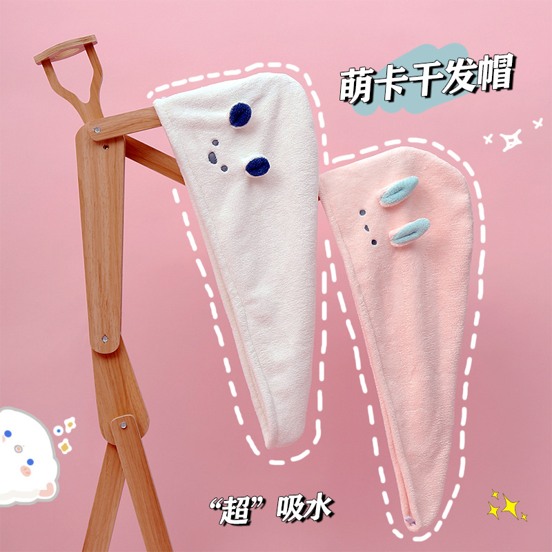 Cartoon rabbit ears household wrap hair towel thickened absorbent coral velvet shower cap Dry hair cap absorbent towel