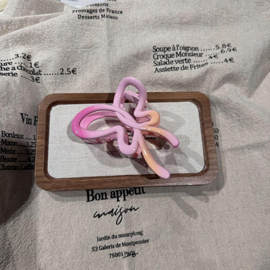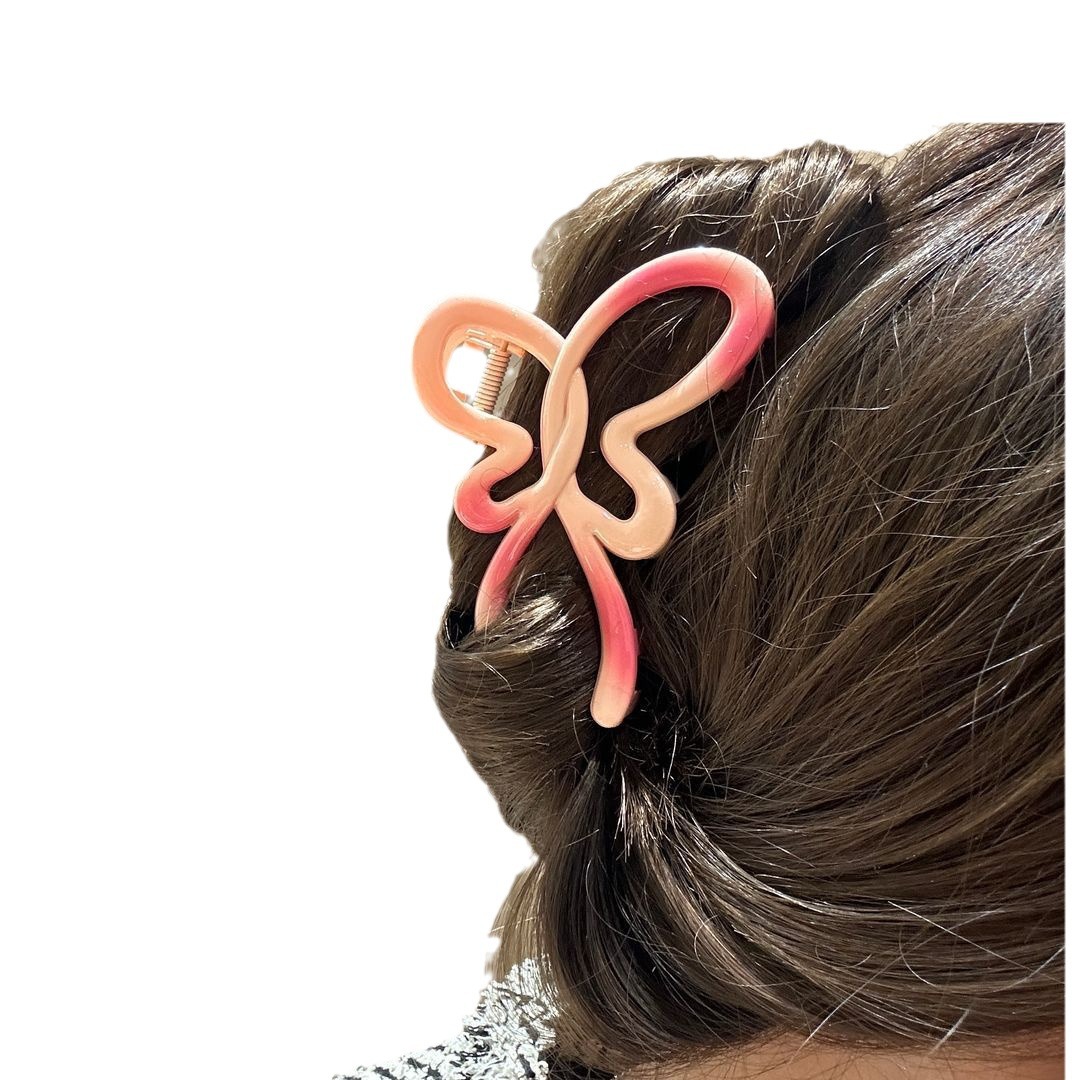 粉色渐变蝴蝶结抓夹后脑勺盘发鲨鱼夹头饰发卡新款发饰女夹子