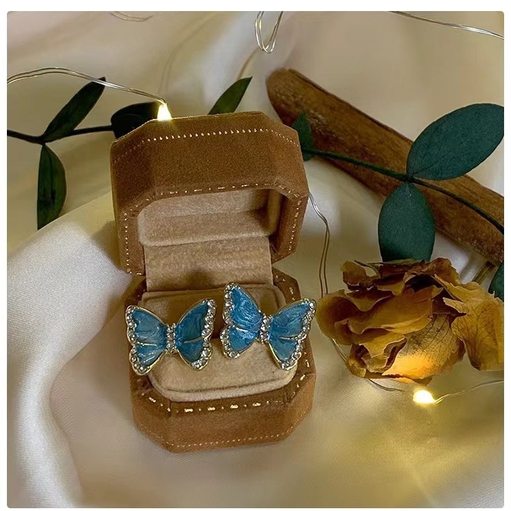 蓝蝶岛。复古港风vintage晕染水钻蝴蝶简约气质优雅清新耳钉耳环