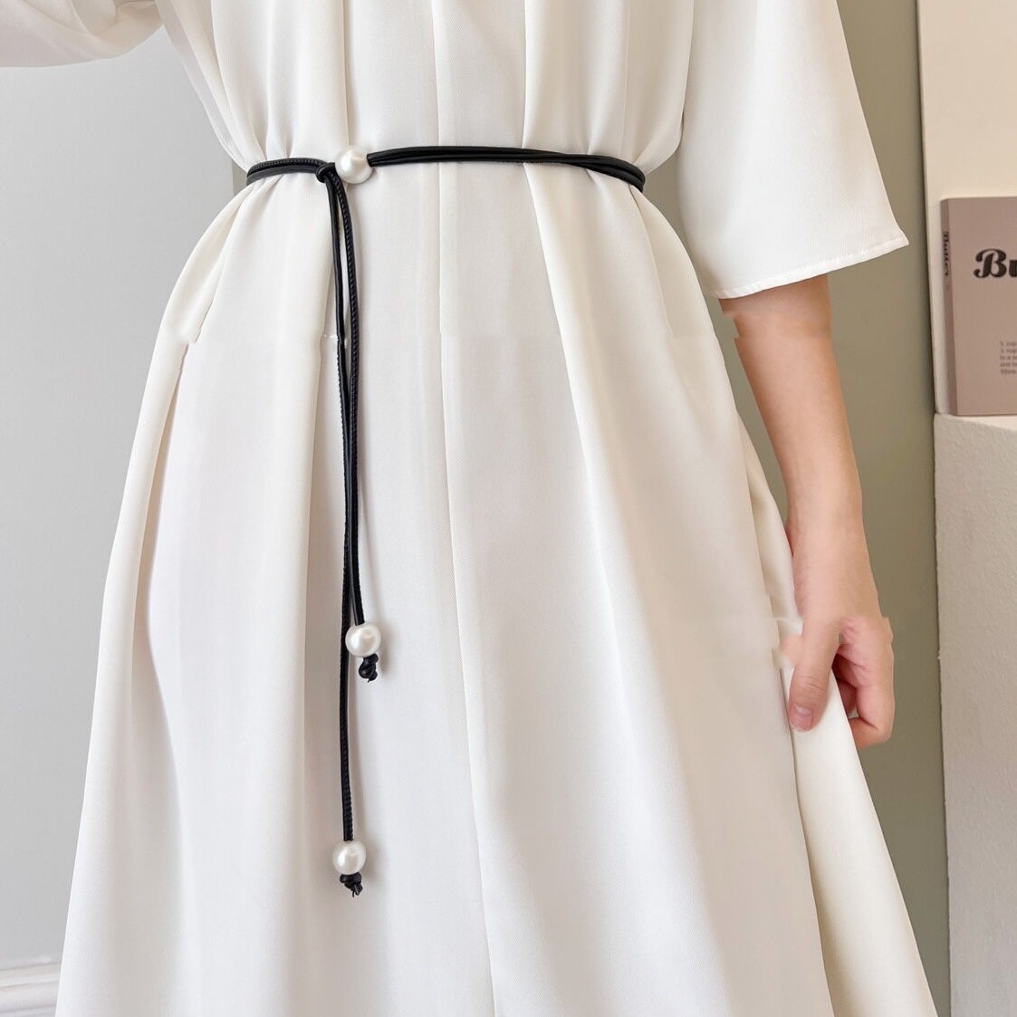 夏季新款珍珠细腰绳百搭配裙子腰带女款时尚穿搭配饰简约风格设计