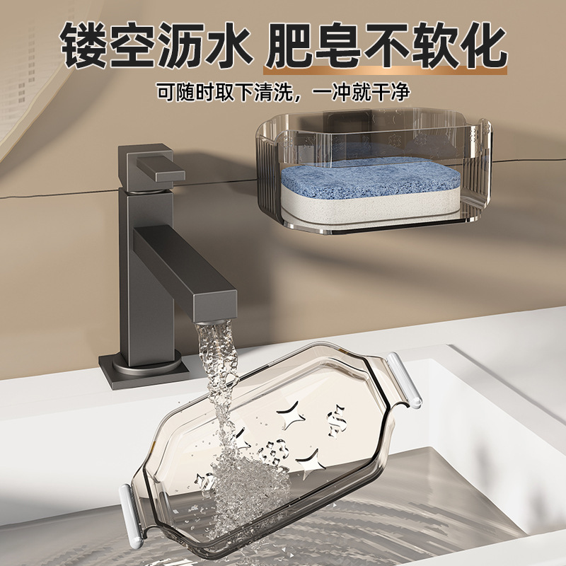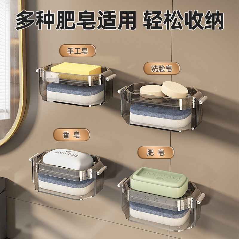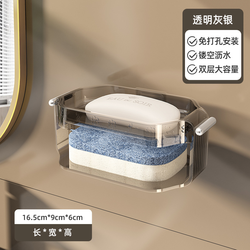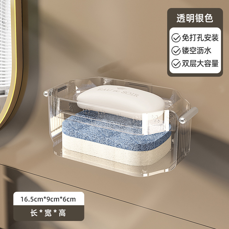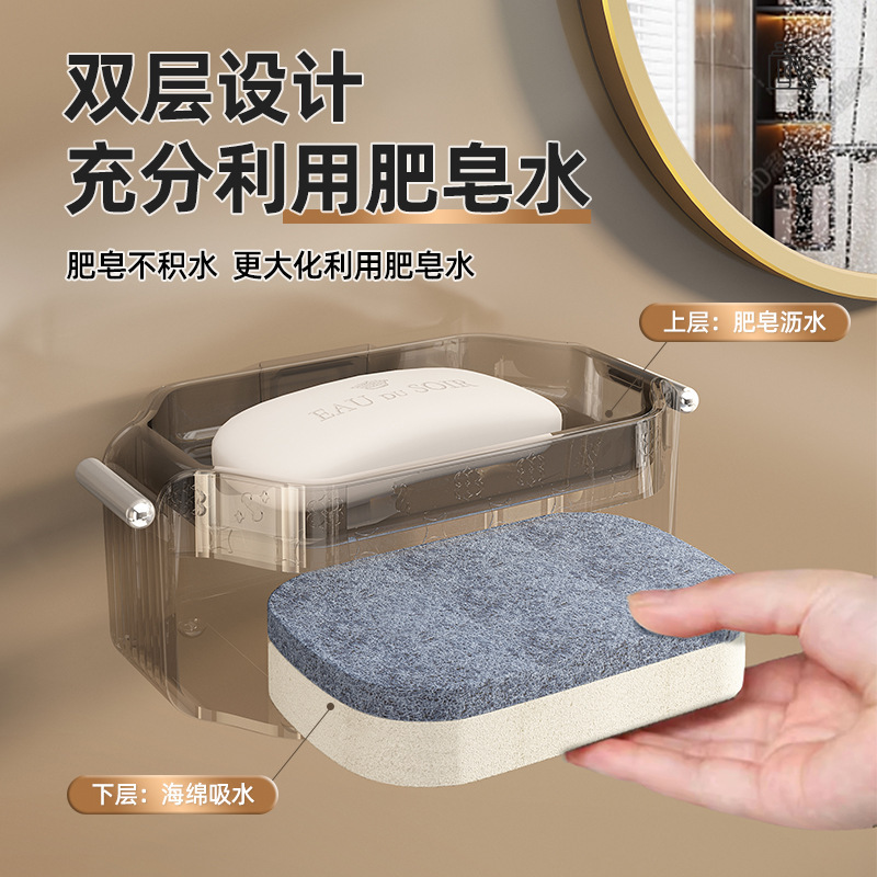 轻奢透明双层肥皂盒卫生间免打孔壁挂式香皂盒带沥水海绵垫置物架