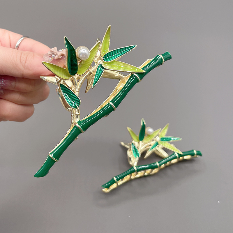 滴油竹子金属抓夹气质汉服发夹后脑勺抓夹女高级感大号鲨鱼夹头饰