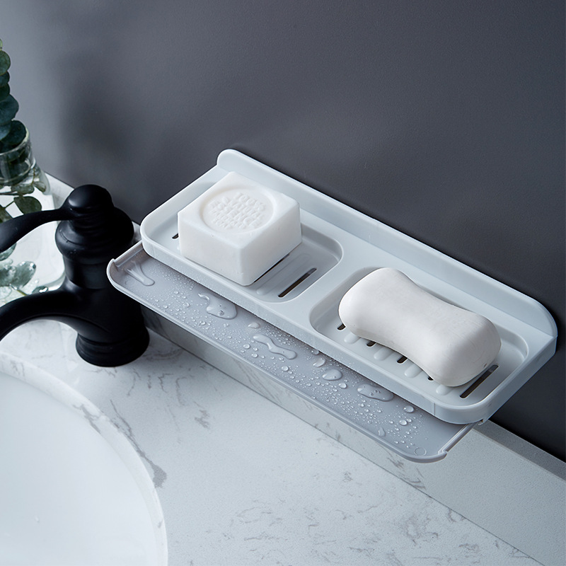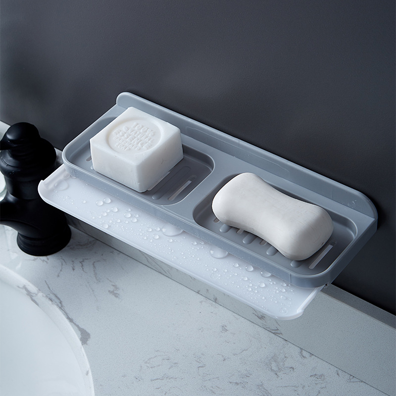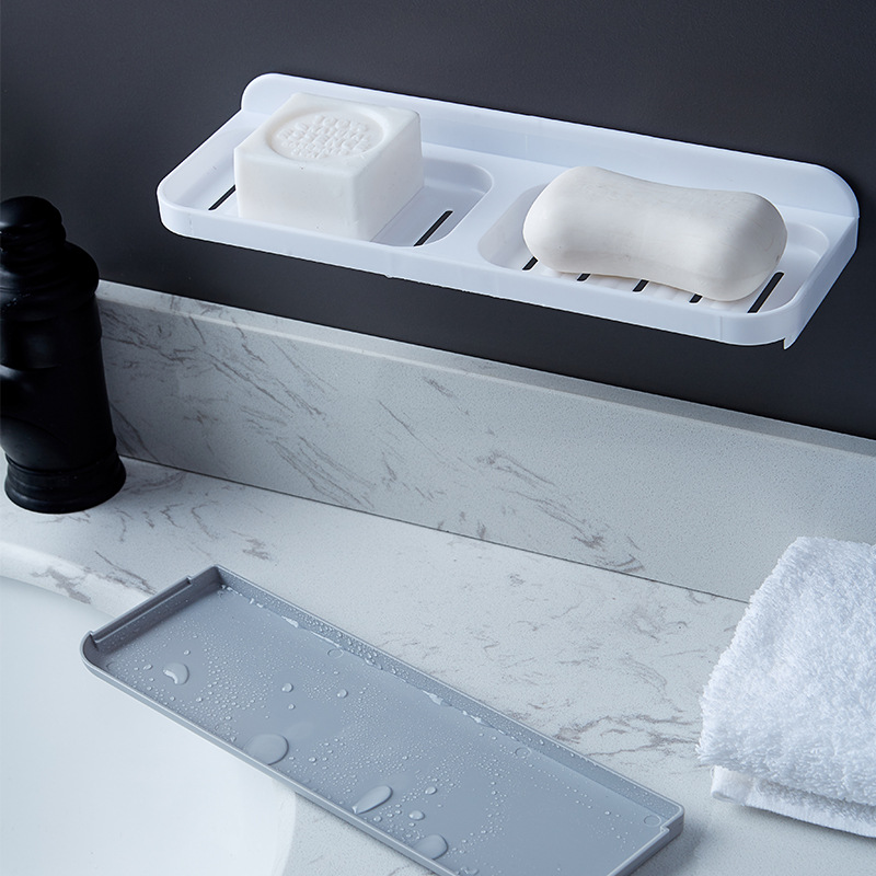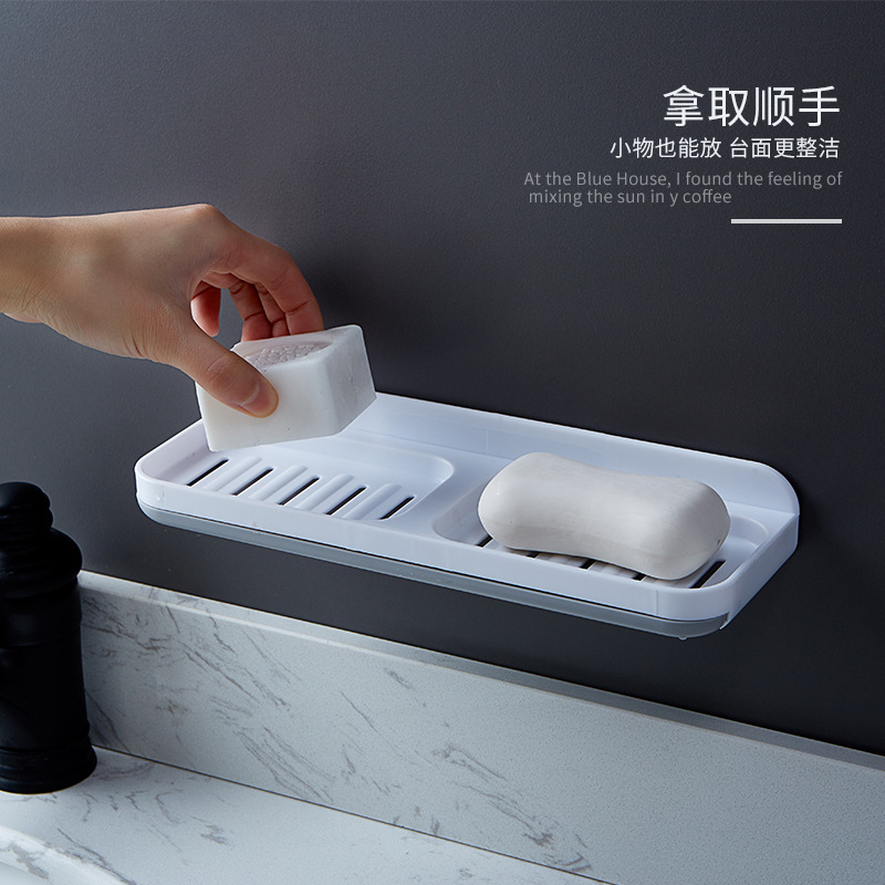 肥皂盒无痕免打孔壁挂式浴室置物架家用卫生间创意双格沥水香皂盒