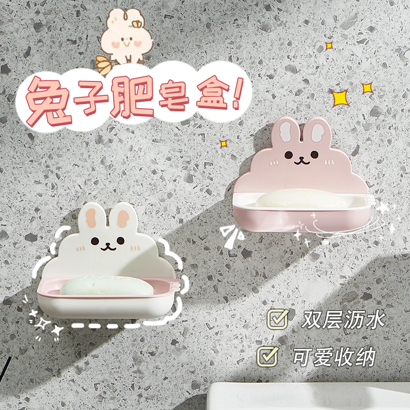 小兔子双层沥水肥皂盒香皂盒免打孔壁挂卫生间置物架卡通可爱家用