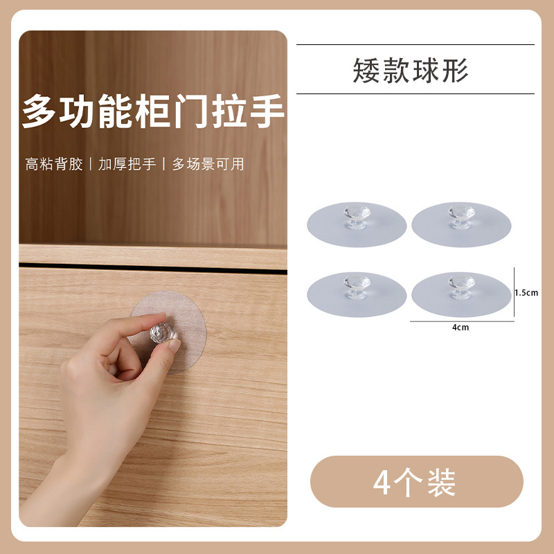 家用免打孔自粘无痕拉手抽屉柜门拉手简约透明多功能透明柜门拉手