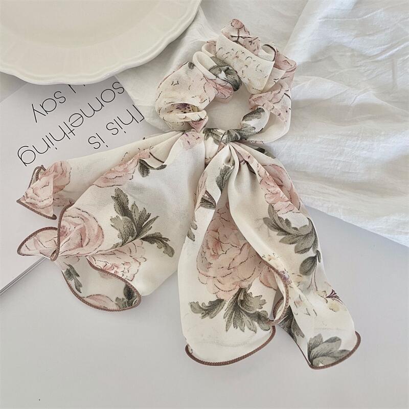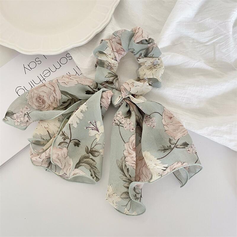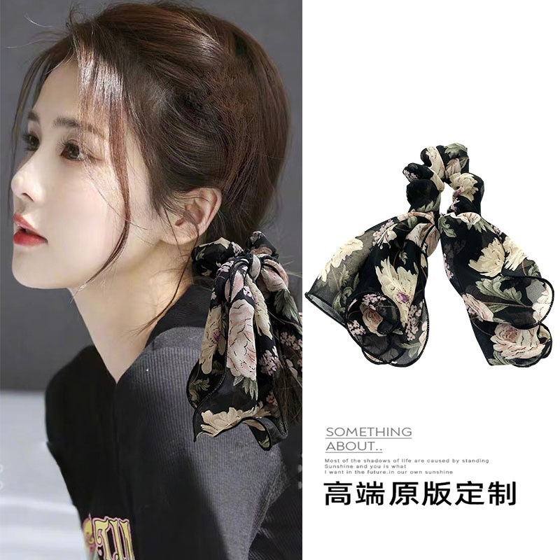 发带女法式复古碎花大肠发圈扎马尾绑发飘带头绳发饰头饰