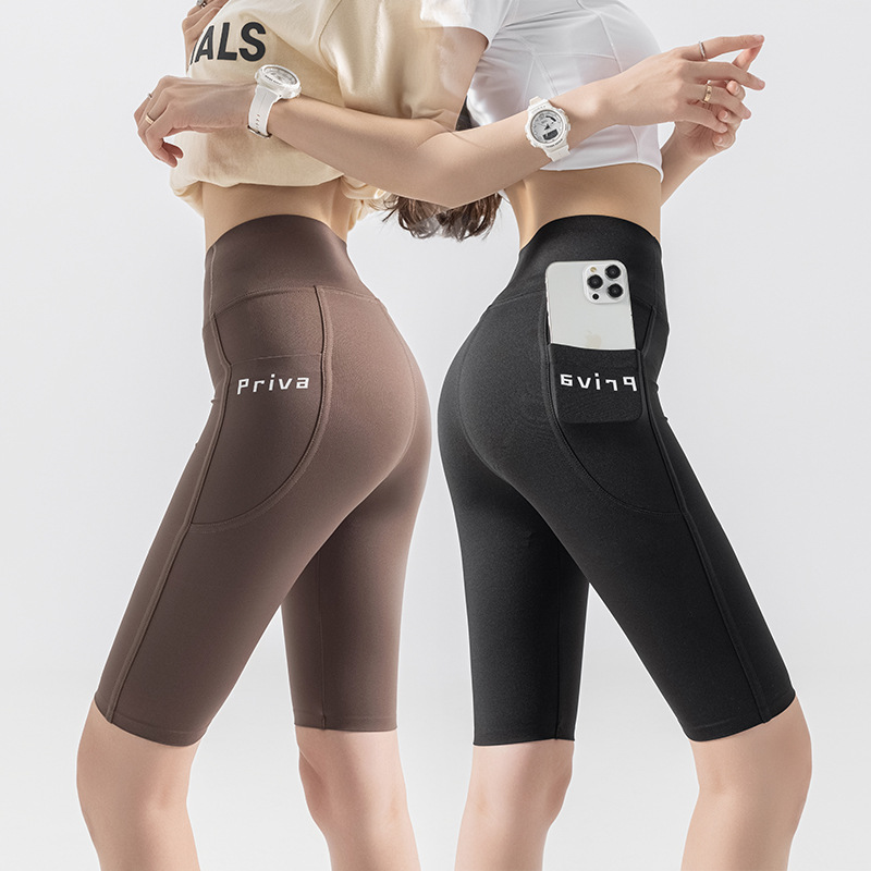 五分鲨鱼裤口袋打底裤女外穿高腰收腹提臀修身紧身显瘦芭比骑行裤
