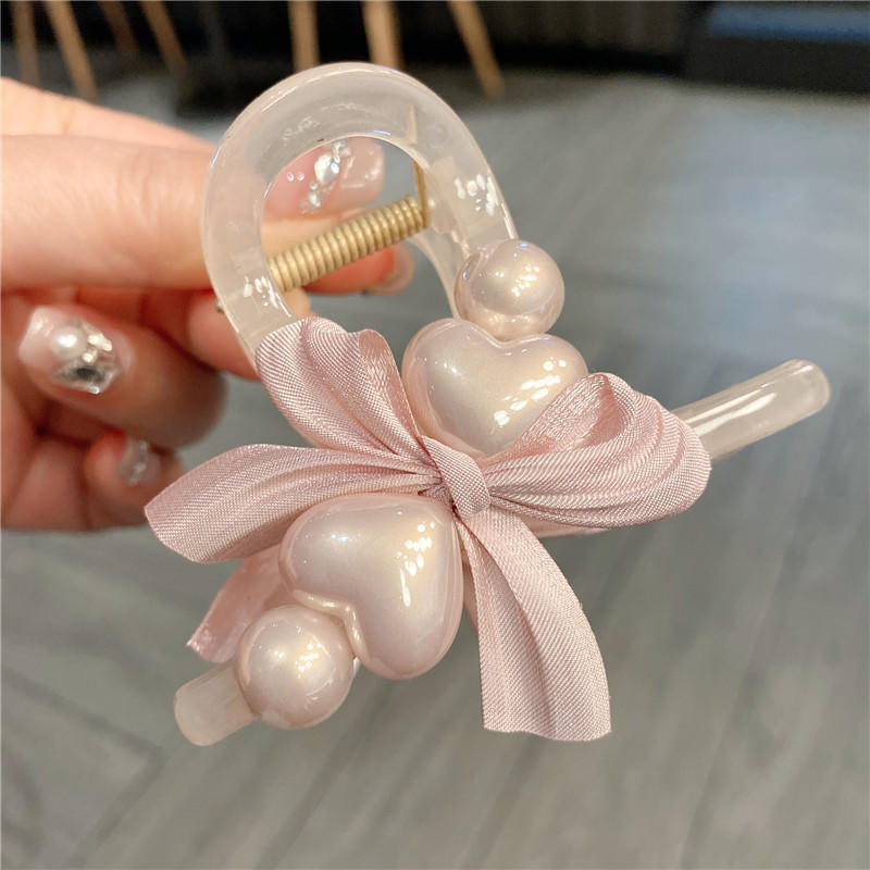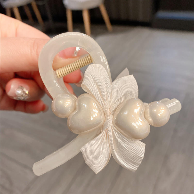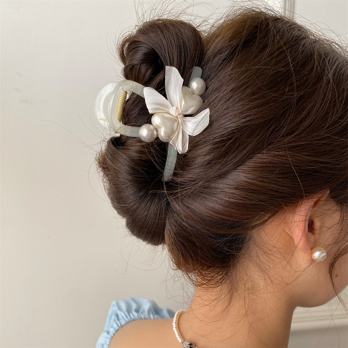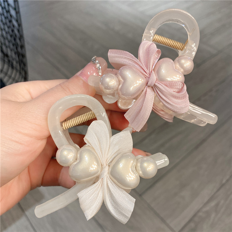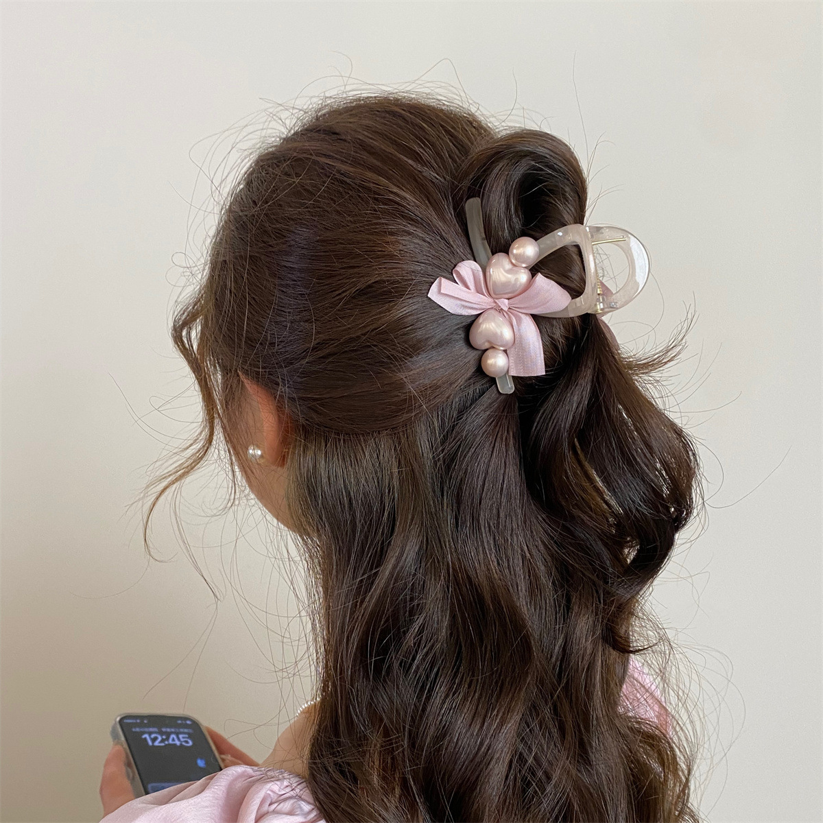 珍珠蝴蝶结抓夹女发夹后脑勺半扎发小号鲨鱼夹感发卡夹子头饰