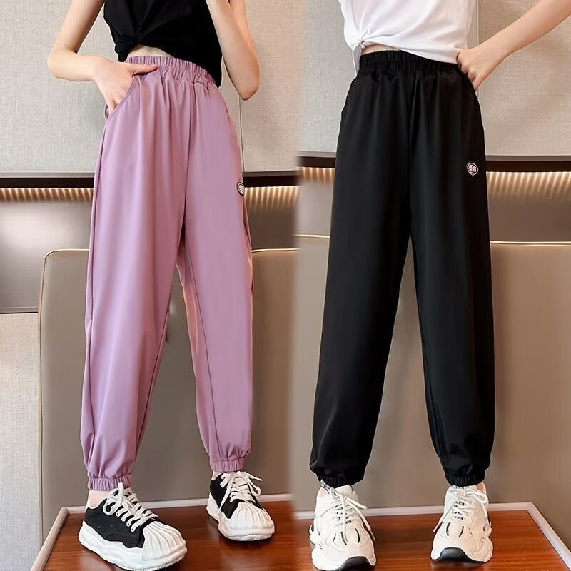 女童夏季裤子薄款夏天儿童速干运动裤夏款宽松大女童冰丝防蚊裤黑