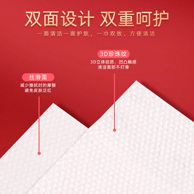 红色喜庆洗脸巾一次性洁面巾加厚珍珠纹美容院洗面巾抽取式棉柔巾