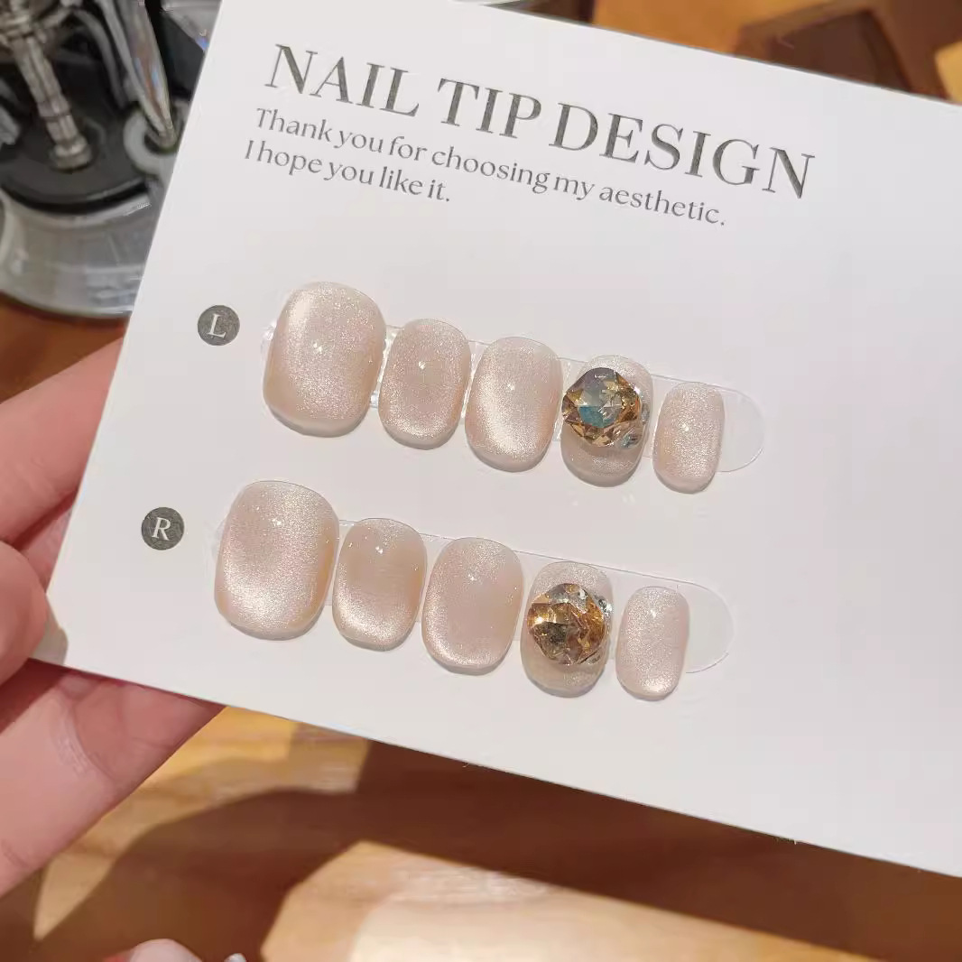 秋冬新款纯手工穿戴甲手绘渐变金猫眼高级感假指甲可拆卸