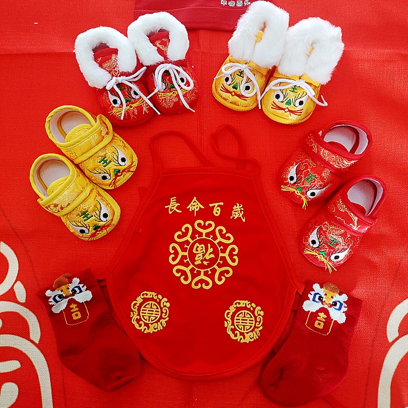 结婚嫁妆子孙鞋肚兜宝宝虎头鞋婴儿袜子帽子