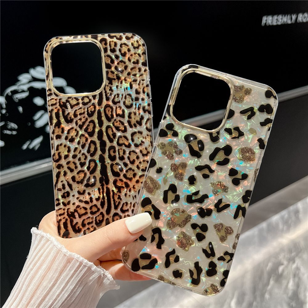 跨境适用于苹果16promax电镀贝壳纹手机壳iphone14/13豹纹双层imd